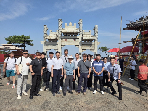 중국 태산 남천문 앞에서 한국파인세라믹스협회 방문단 단체사진