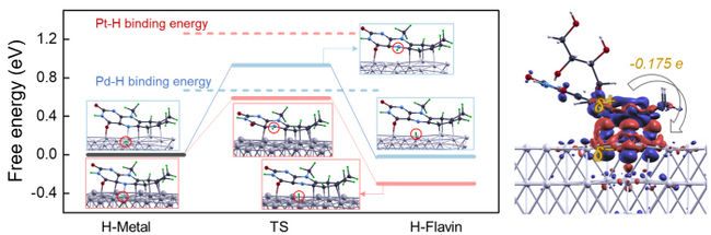 이 조효소는 수소가 팔라듐 전극 쪽에서는 수소 이온이 전극 표면에 더 잘 달라붙게 유도한다. 반면 백금 전극에서는 수소 중간체를 전극 표면에서 제거하는 역할을 한다. 표면에 수소 중간체가 남아 있으면 포름산이 접근하지 못해 반응이 지연된다. 수소가 나오는 쪽은 팔라듐 전극이지만, 백금 전극에서의 반응도 활성화돼야 전체 시스템의 전력 소모가 줄어든다.