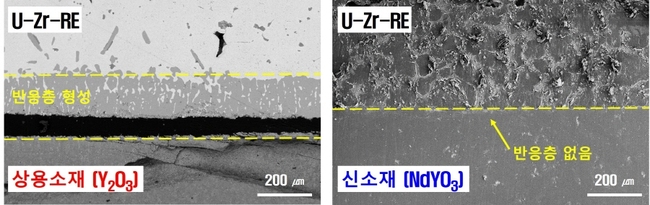 연구팀은 신소재의 성능을 검증하기 위해 금속 핵연료 물질(U-Zr-RE)과 신소재를 실제 핵연료 제조공정과 동일한 1500℃에서 10분간 가열하고, 6시간 동안 냉각한 후 반응성을 분석했다.