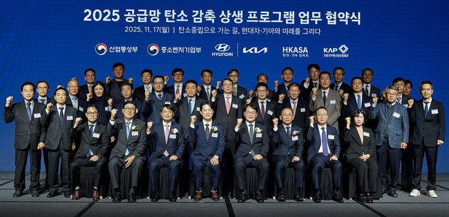 산업통상부(장관 김정관, 이하 산업부)와 중소벤처기업부(장관 한성숙, 이하 중기부)는 11월 17일 현대차·기아, 자동차 부품 협력기업(중소·중견) 87개사(약 200명) 및 자동차부품산업진흥재단과 함께 자동차 산업 공급망의 탄소 경쟁력 제고를 위한 ‘자동차 공급망 탄소 감축 상생 협약식’을 개최했다고 이날 밝혔다.
