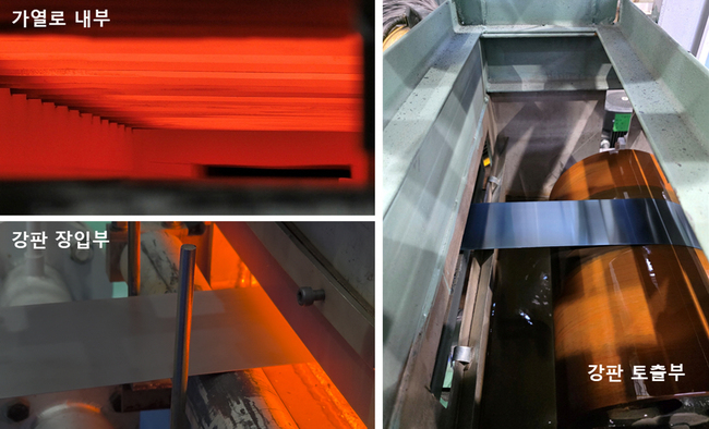 전기식 연속 소둔로 내부 및 강판의 입출입 상태. (자료제공: 에너지연)