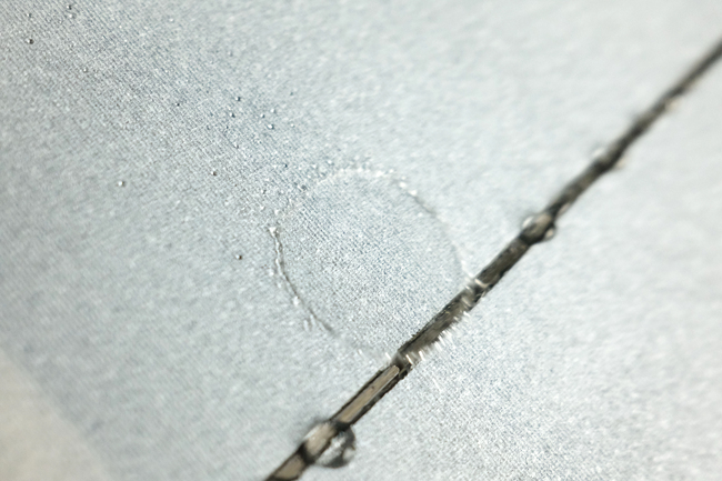 개발된 탄소섬유 복합재의 발수 성능. 빗방울이 연꽃잎에서처럼 빠르게 떨어져 나가 흔적만 남았다. (자료제공: UNIST)