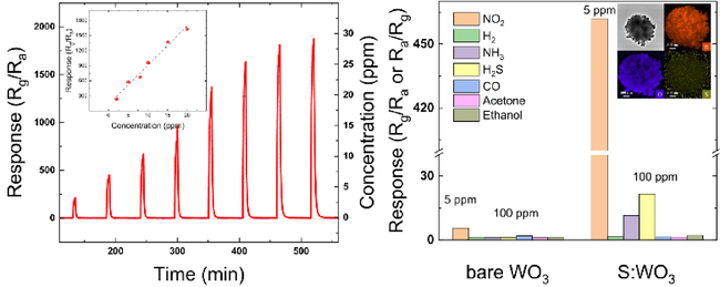 황(S)을 텅스텐산화물(WO₃)에 도입하면 기본적인 결정 구조는 유지되면서도 센서 표면에 미세한 빈자리가 늘어나 이산화질소(NO₂)가 더 쉽게 붙고, 반응이 끝난 뒤에는 더 빨리 떨어질 수 있다. 이로 인해 센서는 아주 적은 양의 이산화질소도 빠르게 감지하고, 짧은 시간 안에 다시 측정을 이어갈 수 있게 됐다. 이러한 특성은 제조 비용을 낮추는 동시에 대량 생산과 센서 소형화에도 유리한 장점으로 작용한다.