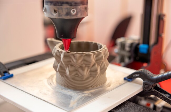 사진은 세라미텍 2024 기술교류(좌)와 3D프린팅 성형 시연(우) 장면. (자료제공: 메쎄뮌헨 한국대표부)