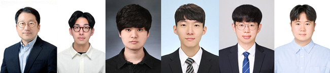 연구진 사진. 좌측부터 박진성 교수, 김윤서 박사, 이치훈 연구원, 류성환 연구원, 황태원 연구원, 김상현 연구원. (자료제공: 한양대)