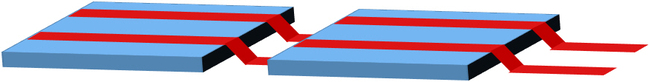 태양전지는 기본적으로 셀과 모듈로 구성되어 있다. 셀에서 출력되는 전압은 작기 때문에 셀과 셀을 연결하는 모듈화 작업은 필수적이다. 우리가 흔히 건물 및 산에 설치되어 있는 결정질 실리콘 태양전지는 셀 크기가 15x15cm 이상으로 크고, 모듈화를 위해 금속 리본이라는 재료를 활용하여 납땜 방식(Tabbing)으로 접착을 하여 셀을 연결한다.(그림 1) 하지만 박막 태양전지(a-Si:H, CdTe, CIGS, 페로브스카이트 등)는 결정질 실리콘 태양전지에 비해 셀의 크기가 보통 폭이 0.04~0.1cm로 매우 작아서, 모놀리식(monolithic)으로 직렬 연결하여 출력을 확보한다. 이때 ‘셀 분리’와 ‘직렬연결’을 동시에 구현하는 패터닝 공정이 필요하며, 산업적으로는 레이저 가공이 사실상 표준 기술로 자리 잡았다. 레이저는 비접촉·고속·고정밀 패터닝이 가능하고, 가공 라인 폭을 줄여 데드에어리어(dead area)를 최소화할 수 있어 모듈 효율 및 수율 향상에 직접적인 영향을 준다[1].