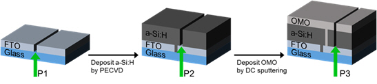 그림 2. 레이저를 활용한 모놀리식 직렬연결을 위한 P1,2,3 가공 공정 개요